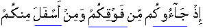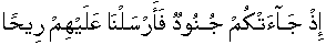 5:20;14:06;35:03] you people recall the Grace of Allah upon you people when came to you invisible forces/troops whereupon We sent upon them/enemy winds [which you saw] [Same