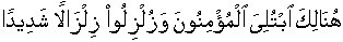 That was the point in time when the believers were subjected to a liquefying trial and they were jolted with a very severe jolt [like some believers of earlier tines-2:214] [33:11]