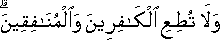 O you the Elevated and Chosen One [Muhammad Sal'lallaa'hoalaih'wa'salam], keep maintaining reverence and fear of Allah and do not hearken to the Non believers and Muna'fi'qeen. [Same information in same words in 4:24;33:01;76:30]o Indeed Allah is Ever All-Knower, All-Wise, Knower of invisible/hidden realities/considerations. [33:01]