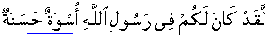 Certainly there has been for you people an excellently balanced and appropriate example of conduct in the Person of Messenger of Allah [Same pronouncement in same words in