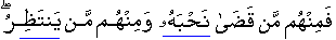 Thereat amongst them is one who has fulfilled his vow and among them is one who is in wait. o And they did not change anything as replacement. [33:23]