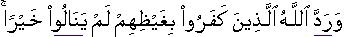 And Allah turned back, those who had refused to accept, in their frustrating rage since they could not gain/achieve anything good [by their expedition].