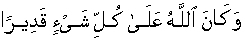48:21]o And Allah has eternally the infinite power and control over each and every thing to keep it in bounds/limits/measure. [33:27]