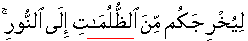 57:09] so that He may [through the Messenger with the Grand Qur'aan] move you people out of the depths of darkness into the visible light. [Read with 2:257;5:16;14:01;65:11] And He has been Merciful for the Believers. [33:43] [Read with