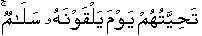 14:23;16:32;25:75] Their/Angel's greetings, the Day they confront it, will be "peace and tranquility". o And He has prepared/kept ready for them a reward par excellence. [33:44]