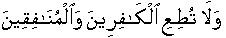 same words in 33:01] and you do not hearken to the Non believers and Muna'fi'qeen.
