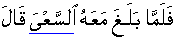 He got the son [Iesma'eile alai'his'slaam, in response to request/prayer] thereafter when he crossed over to the age of working-exercising effort-running with him, he said,