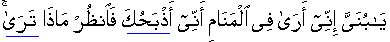"O My dear son, it is a fact that I keep seeing in my sleeps that I am sacrificing you, therefore, you look into this as to what you see"