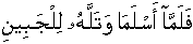 Thereafter when they both submitted to command and he laid him down for his forehead [37:103]
