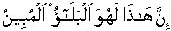 Indeed this was certainly the Manifest Trial [for exposure of your absolute sincerity]" [37:106]