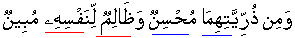 o and from the progeny of both two of them are those who evidently conduct moderately, gracefully and generously and the other who is manifestly unjust evil for his own self. [37:113]