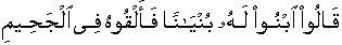 [after what unexpected happened to the surprise of clergymen-21:62-68] They/clergymen said, "Make for him a furnace thereafter you throw him in the blazing fire" [37:97]