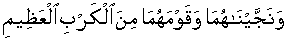 and/while We rescued both and the nation of both of them from great distress; [37:115]