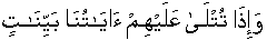 10:15;19:73;22:72;34:43;45:25] And when Our evident/distinct/Manifest Aaya'at [of The Book] were narrated to them, word by word, [Same pronouncement in same words in