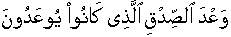 the promise truthfully fulfilled, one which was promised to them. [46:16]