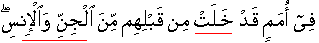 41:25] upon the people of generations, who have passed before them from amongst human beings and Jinn species [Same pronouncement in same words