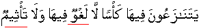 And We provided them with fruits and meat which they consciously desire. [52:22] They will be joyfully snatching from one another therein the glass of drink in which there is no side effect resulting in ill/irrational speech and nor any dilapidating/hangover effect. [52:23] [Read with