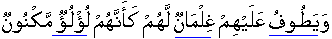 37:45;43:71;52:24;56:17;76:19] And for them grandsons/young children will present/serve [drinks in the flagon] appearing like as if they are protected pearls in shelves [made apparent]. [52:24] [Replica/Mirror