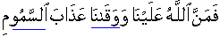 and the Sustainer Lord of them protected them from the infliction of Hell-Prison. [52:18] [Replica/Mirror