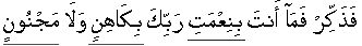 68:02] Therefore you the Messenger [Sal'lallaa'hoalaih'wa'salam] admonish/remind people, for reason of the Grace of your Sustainer Lord you are neither a soothsayer/prognosticator and nor you are obsessed by delusions. [52:29]