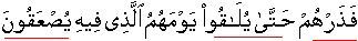 Therefore [having warned them and observing extremely irrational attitude] you the Messenger [Sal'lallaa'hoalaih'wa'salam] leave them till they meet/encounter the Day in which they will be terrified. [52:45]