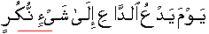 for the Day when the Caller will call towards an unpleasant unfamiliar thing, [54:06] with their visions dazed/downcast they will come out from the graves as if they were like an expanding swarm of locusts, [54:07] [Read with 14:43;33:46;46:31;70:36] causing themselves race towards the Caller.