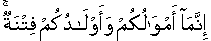 Indeed your worldly wealth/movable and immovable assets and your progeny is like a source/object/ crucible of  check/test for purity/sincerity,