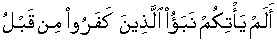 Have not yet reached to you people the news of those who had persistently refused to accept/believe in aforetimes,
