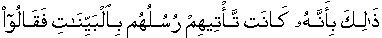 This happened certainly because of the reason that their Messengers used to come to them with the distinct unprecedented demonstrative signs/Aa'ya'at whereupon in response they said,