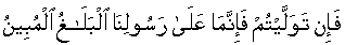 In response if you people have consciously and purposely decided to turn away from the word of Allah and the Messenger it is your choice since the only responsibility upon Our Messenger [Sal'lallaa'hoalaih'wa'salam] is to deliver/pass on/convey the Message [Grand Qur'aan which makes every thing evident/apparent/distinct-to your ears and hands, orally and in writing; and to take it to your heart and brain is your own burden] . [64:12]