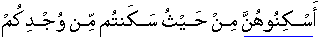You cause them/the divorced wives during the intervening time-period of restraint between pronouncement of Divorce and Untying the Fold of Nikah to stay at places where you dwell yourself out of your means;