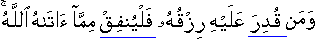 and for whom his sustenance is limited one then let him spend according to that which Allah has given him.