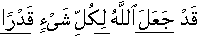 24:38] And He/Allah will like to give/provide worldly sustenance to him, from a source about which he has no idea/thought [because of his cause and effect perception]. And whoever transforms himself to exclusively place his trust/reliance upon Allah, then/for reason, He alone is sufficient for calculations/equations for him. Indeed Allah is the accomplisher/takes his affair to logical conclusion. Indeed Allah has determined/appointed for each and everything a measure/relativity. [65:03] And those from amongst your wives who have lost expectation of menstruation, but/if you husbands have become double minded/state of uncertainty, then in that case the intervening time-period of restraint of them between pronouncement of Divorce and Untying the Fold of Nikah is three months, and so is for those wives who have not yet menstruated, at the point in time of pronouncement of Divorce [because of menopause or removal of uterus; instead of three menstruation cycles as prescribed in 2:228]. And for the pregnant wives their intervening time-period of restraint between pronouncement of Divorce and Untying the Fold of Nikah is that they deliver their pregnancy.