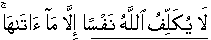 2:286;6:152;7:42;23:62;65:07] Allah does not impose/burden/responsibility/demand/duty upon a person except according to her given capacity/scope/capability/strength/practicability/access/approach/tolerance. Allah will keep creating easiness after hardship. [65:07] And there were many habitats who disobediently went away from the Command of their Sustainer Lord and His Messengers,