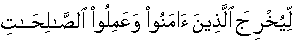 5:16;14:01;33:43;57:09;65:11] so that he/it may move those people who have believed and conducted righteously out of the depths of darkness into the visible light. [Same pronouncement in same words in