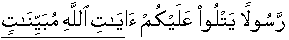 Allah has indeed since sent to you people Admonition/Grand Qur'aan, [65:10] the Messenger [Sal'lallaa'hoalaih'wa'salam], recites upon/for you the Aa'ya'at [verbal presentation of information, facts and knowledge in the Book], of Allah word by word/syllable by syllable, which make every point distinct/isolated/vivid/demarcated/crystal clear for comprehension/retention in memory, [Similar information in
