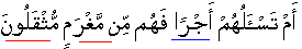 52:40] Or do you the Messenger [Sal'lallaa'hoalaih'wa'salam] demand/ask you any remuneration for telling them this guidance for which reason they are overburdened in debt? [68:46]
