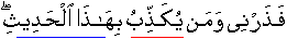 Therefore you leave Me and the one who publicly contradicts this "Al Hadith"-this breaking news/statement/Grand Qur'aan.