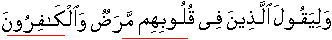 and that those in whose hearts is a disease and those who persistently refused to accept may say,