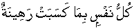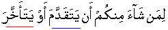 so that anyone amongst you people wishes that he may consciously and purposely make himself advance or hang back/go forward or remain behind [to take heed and aspire to avoid this eventuality]. [74:37] [Read with 52:21] Each and every person [enjoying freedom of choice and act] is the pledge/hostage and will be imprisoned for reason of what it has earned/sum total of acts performed; [74:38]