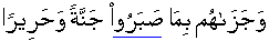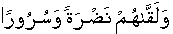 and caused them meet/feel radiance and joy.[76:11] And He rewarded them, for they remained steadfast exercising coolly perseverance, Paradise and silk. [76:12] [Same information in same words in