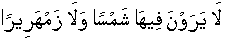 They will not see therein Sunshine heat and nor chilling cold. [76:13] [Read with