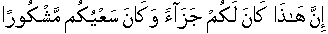 17:19] Indeed this has been arranged for you people as reward and your efforts have been recognized appreciatively. [76:22]
