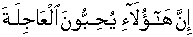 Indeed these are the people who cause themselves to love the immediate gain and pleasure/world, and leave on their backs consideration about the heavily compacted Day. [76:27]