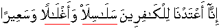 14:49;25:13;40:71;69:30] Indeed We have prepared for the persistent deniers/Non-Believers chains and iron collars/neck bands and heated Hell-Prison. [76:04] [Read with