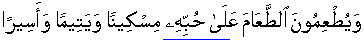 and they feel fear of the Day whose disquieting effect is far spread. [76:07] And they feed, in the attraction of His/Allah appreciation and approval, the indigent and the orphan and the captive/imprisoned, [76:08] [Read with