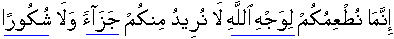 92:19] [clarifying] "We feed you people for seeking the attention and approval of Allah alone, no reward/gain do we desire from you, and nor thanks. [76:09]