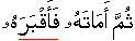 Afterwards lapse of time [expiry of his term of life] caused him to die for which reason He caused him [segregated/alienated and] placed in grave. [80:21]