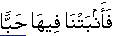 and then in her We made visible/emerge/produced the sprout of grain crop/grasses, ( grass; cereal crops, grains; Division: Angiosperm;Class: Liliopsida; Monocotyledoneae)[80:27]