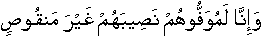 Passive; Mood: Jussive; [Form-II]; Proxy Subject pronoun/Ergative hidden; مصدر-تَوفِيَةٌ Verbal noun.